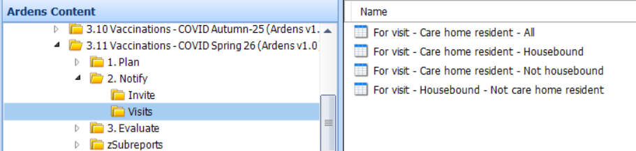 Separate visit reports are provided for housebound and care home residents to support planning outside of general invite workflows: