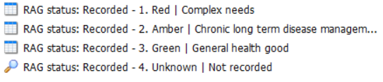 - Patients whose subsequent coded data suggest their current RAG status may no longer be appropriate and require review