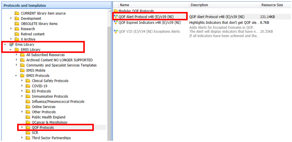 Navigate to EMIS Library > EMIS Library folder > EMIS Protocols > QOF Protocols.