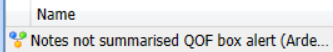 If you deactivate the EMIS QOF alert this will also deactivate the EMIS 'Notes not Summarised' pink box alert, therefore, we recommend activating the Ardens 'Notes not summarised' protocol.