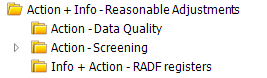 The Info + action - RADF registers folder contains searches and reports to use to monitor those patients who have a reasonable adjustment and those that perhaps need an appointment to discuss and code any reasonable adjustment.