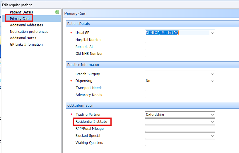 This reports on patients recorded in a care home with a missing residential institute code or the code is incorrect. This can be added/amended within the patients Registration screen.