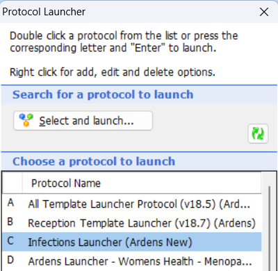 Open the Infections (Ardens New) template launcher (access this support article for instructions on using the Template Launchers).