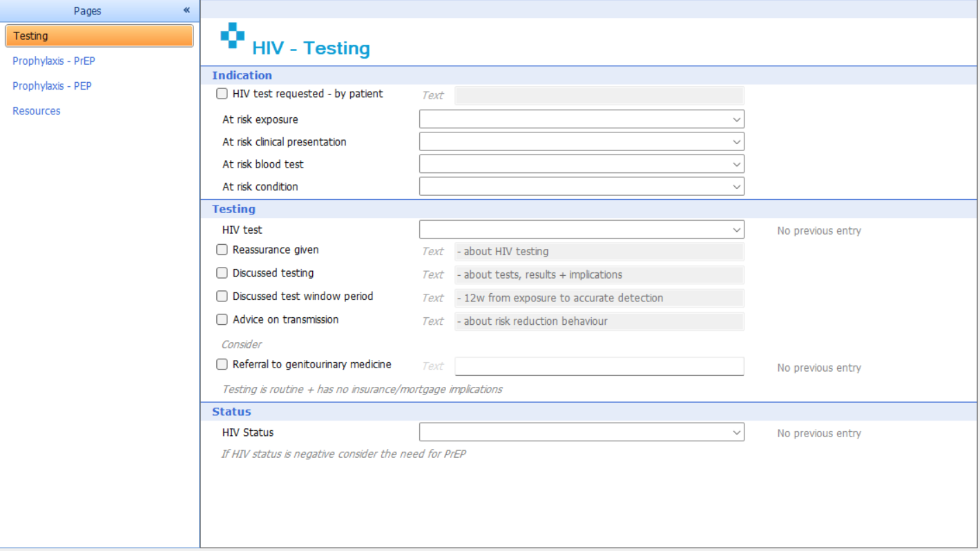 The Ardens resources support practices in delivering routine structured HIV testing, assessments, management advice, shared decision-making, planned follow-up and review, and clear, accurate documentation within the patient record. The resources include: