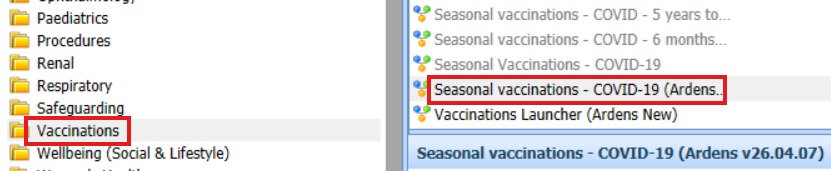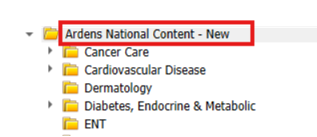 To do this, access the Resource Publisher module (providing you have the relevant permissions) and navigate to the Shared folders > Ardens National Content – New >Vaccinations folder.