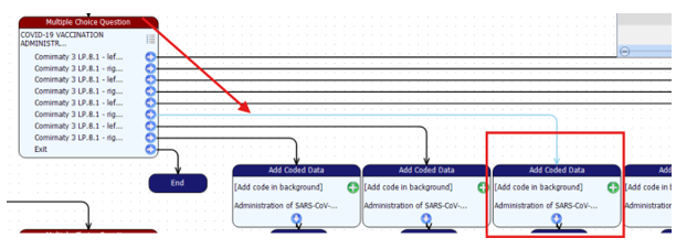 Next, edit the corresponding 'Add Coded Data' boxes by tracing the line from each multiple choice option to its associated data entry field.
