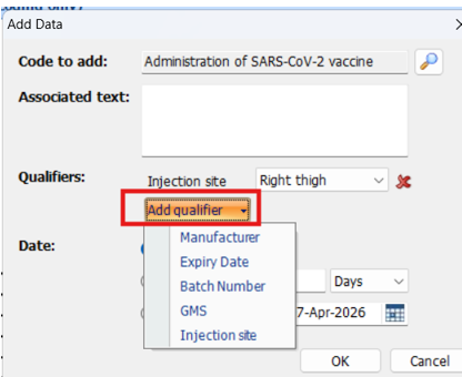 ⚠️ Please note: The Add Coded Data MUST be edited to include the vaccine details in the patient record once the protocol has been saved.