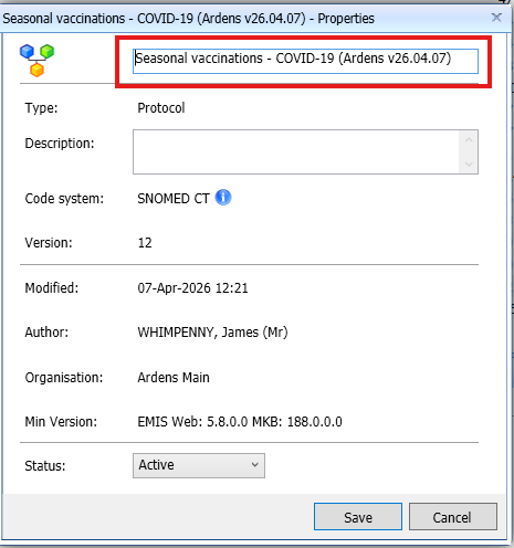 This support article outlines how EMIS practices edit the Ardens "Seasonal Vaccinations – COVID-19 protocol. This protocol is designed to help healthcare professionals accurately record COVID vaccination activity as part of the 2026 COVID-19 Spring booster Programme.